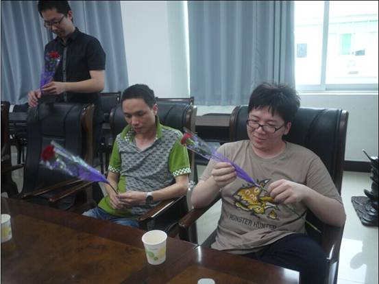 3 三位男同胞默默注視著手里的花花,低頭沉思……