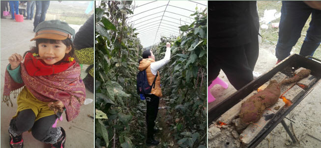 圖一,判斷燒烤是否熟了的標準——糊了焦了,但萌娃吃的挺開心。圖二、三,農家樂里啥玩意都特新奇好玩。