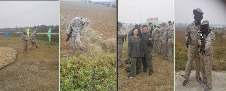 下午進行了真人CS作戰,場地設在野外草場,整個“戰場”環境十分逼真,大家既緊張又興奮。經過教練一番指導后,所有人分為AB兩個小組。戰斗前,小組還分別“秘密”討論并制定了戰術戰略。